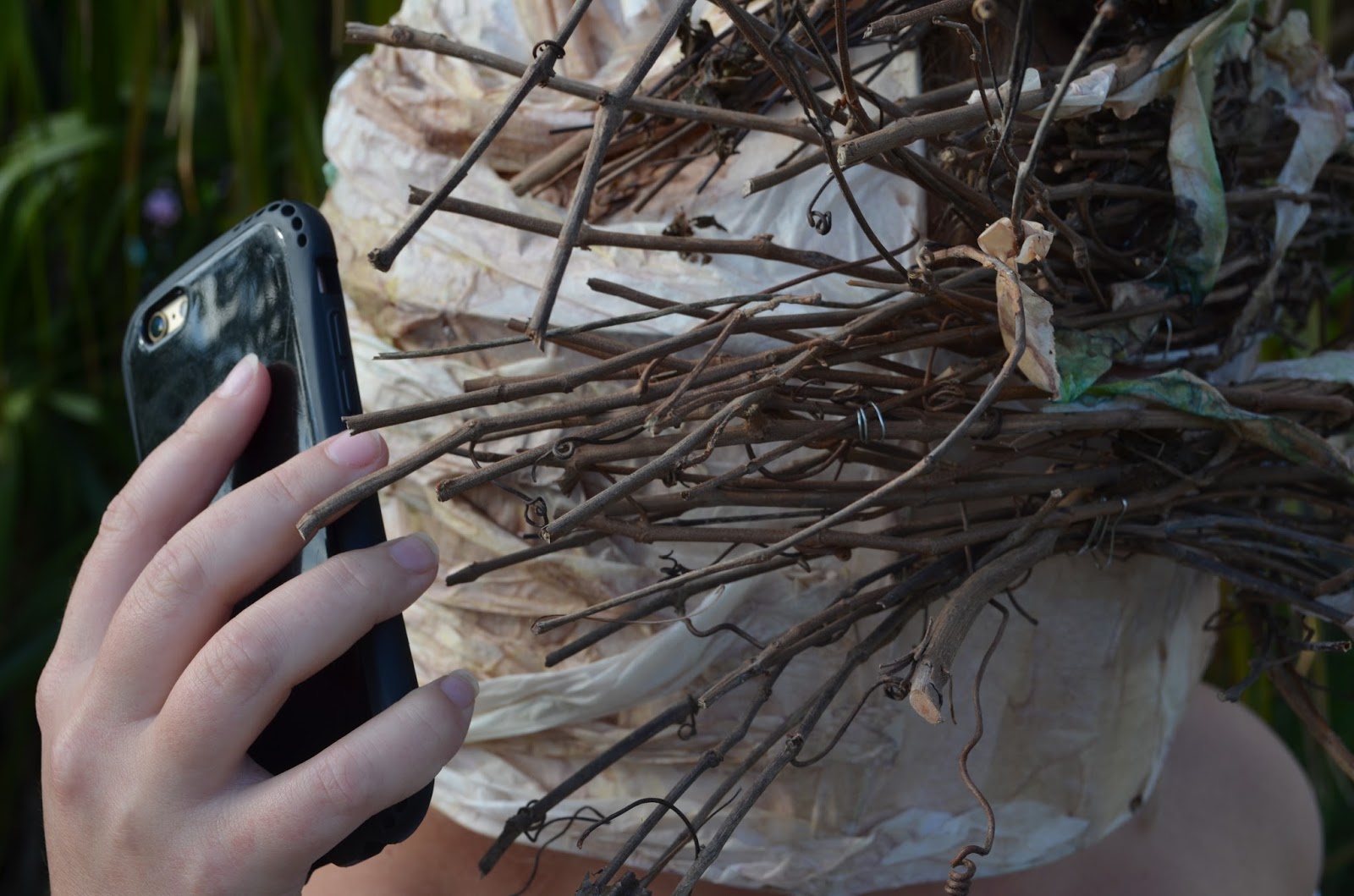 Artist Statement: Identity is something that is rooted within all individuals. It is something everyone is forced to deal with and determine within themselves. When creating this mask, I thought about man's identity as a whole. Where did man originate from? Where was man before now? The one thing that kept coming back to my mind was nature. This is something that is the core of our being. No matter what happens in life, we can always turn back to nature. It's where we came from. I chose to create a mask that exhibited man within nature, but also where man is today. I wanted to show that while man is rooted in nature, we now have a dependence on technology. As much as one would love to be back within their natural state, we cannot escape the impending doom of the phone in our hands, the computer in our lap...